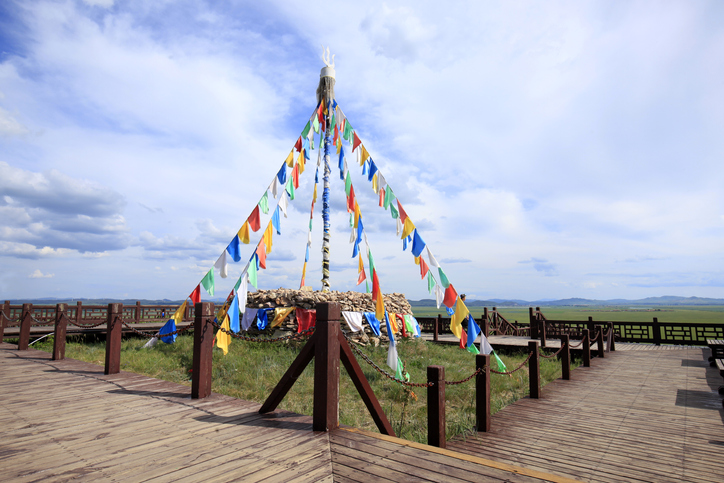 우라나라의 성황당과 비슷한 의미의 장소로 돌무지를 세바퀴 돌고 소원을 비는 풍습이 있습니다.
