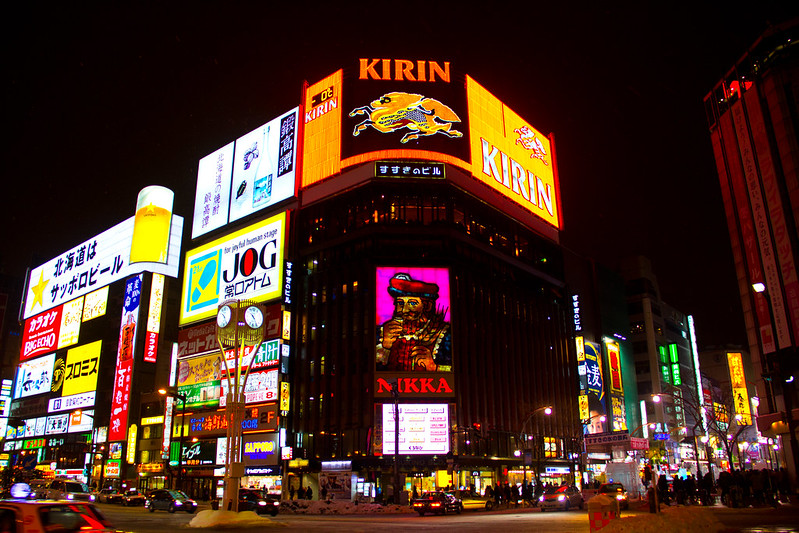 삿포로는 물론 일본 3대 번화가로 손꼽히는 스스키노에는 무려 4500여 개의 상점과 가게, 바 등이 몰려있어 저녁이면 늘 사람들로 북적이는 스스키노 거리