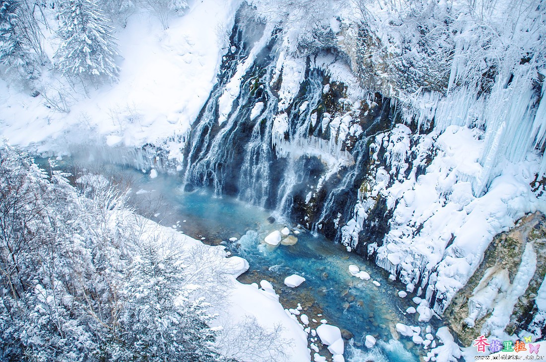 비에이의 주요 관광명소 중 하나인 명소 흰수염폭포(겨울)