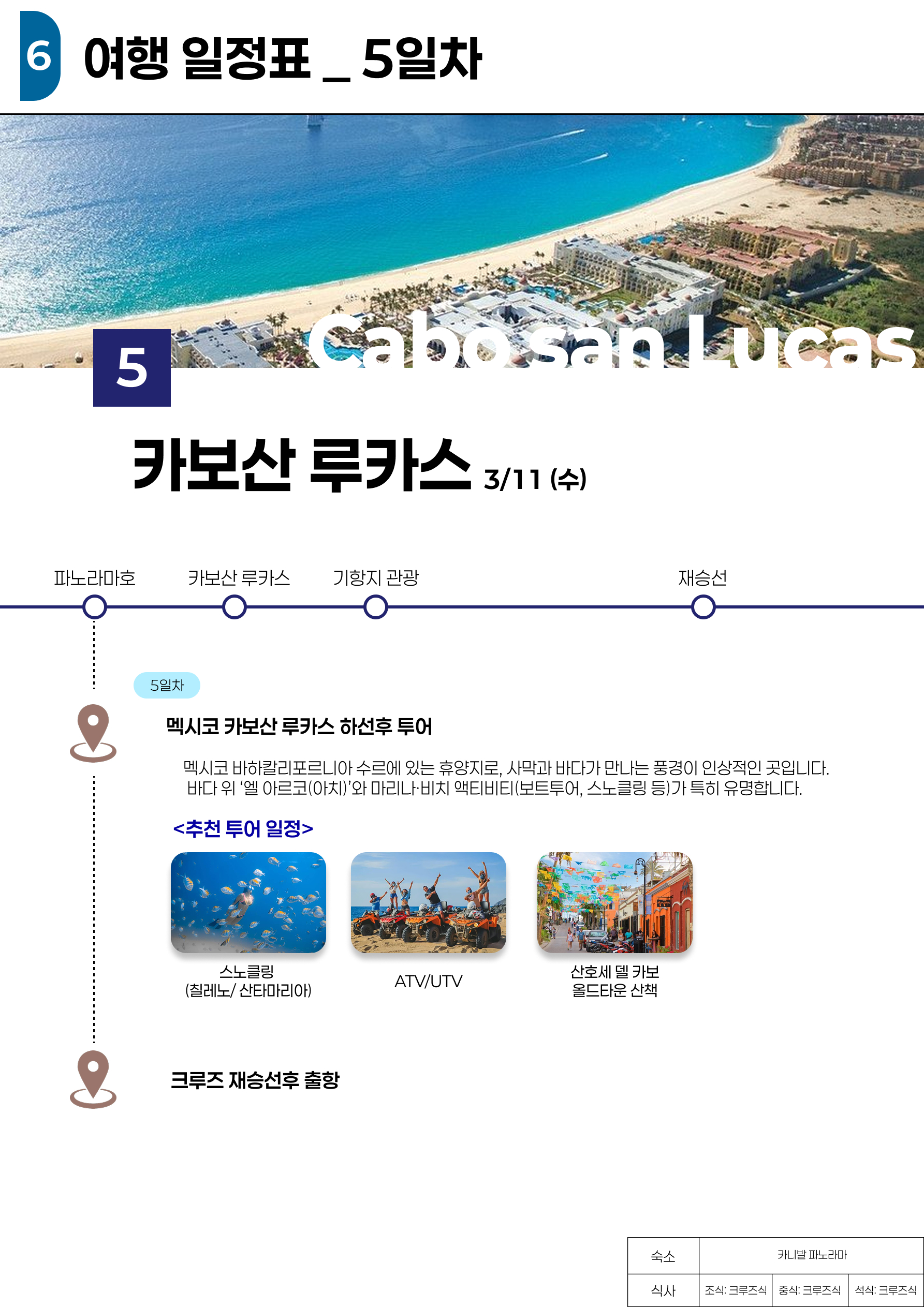 호텔 크루즈 식사 [조식]호텔식 [중식]크루즈식 [석식]크루즈식 -