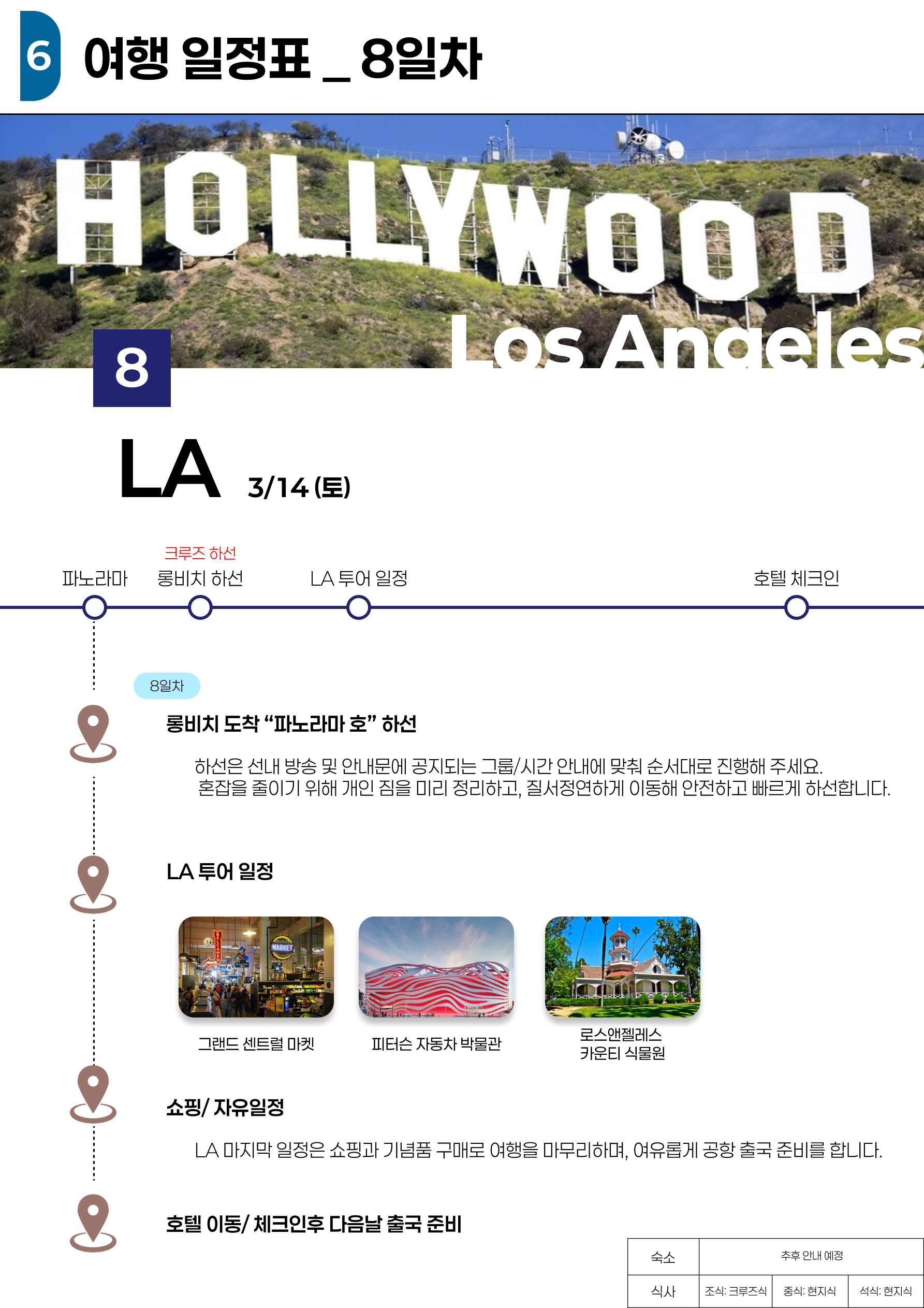 ↳ 하선일 : 크루즈 터미널 픽업 후 전일 LA투어(식사 올포함)