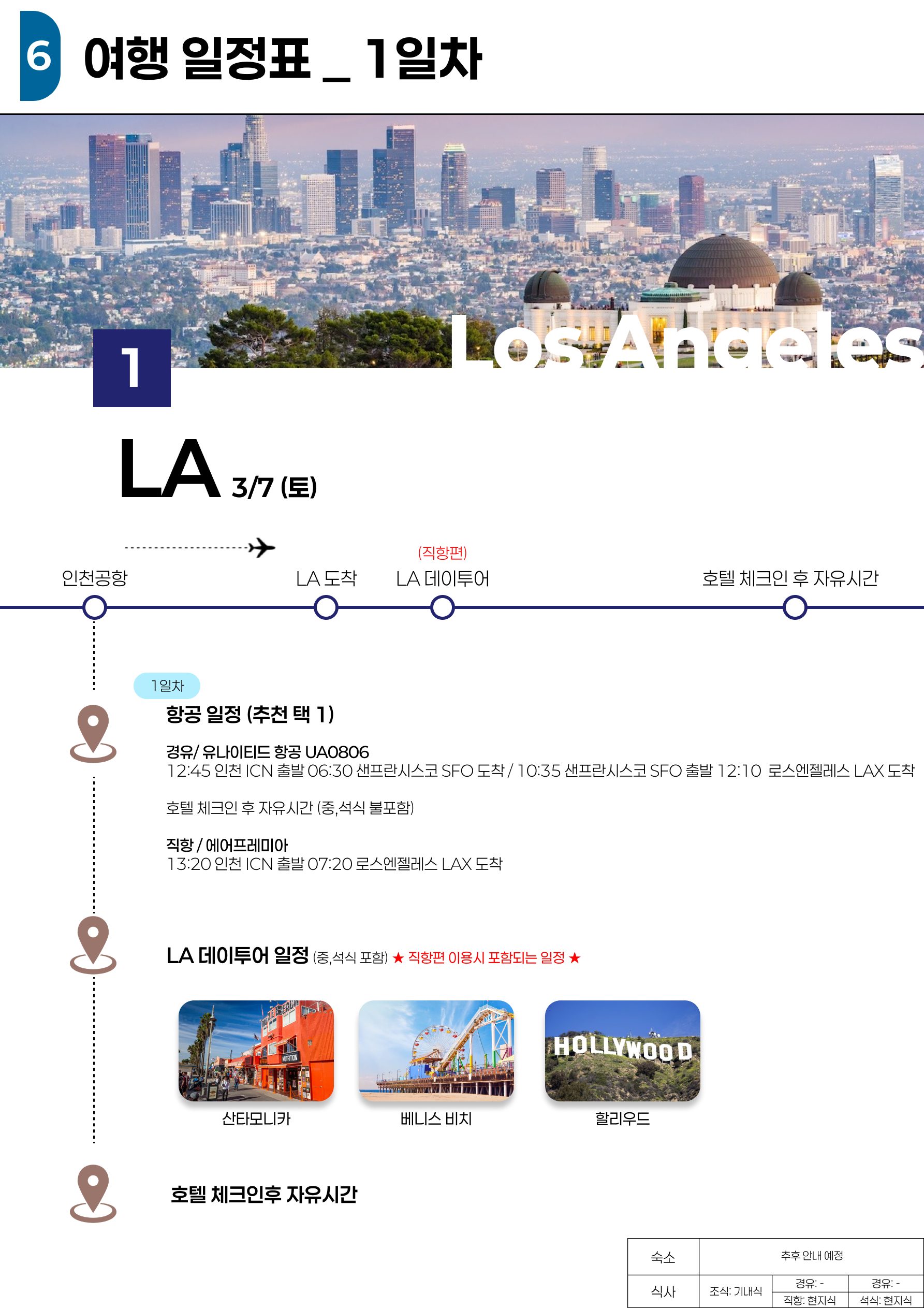 ↳ 직항 이용 시 : L.A투어 1일 추가(식사 올포함)
