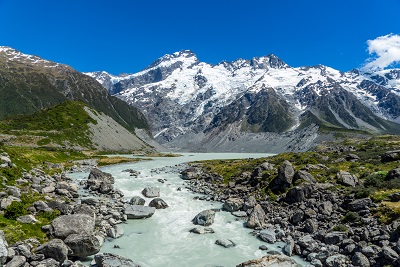 마운트 쿡을 푸카키 호수에서 조망